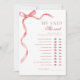 Enjoy your bridal shower with this "He Said She Said" game, featuring cute pink ribbon, custom questions and pink bow back. Easily add your own details by clicking on the "personalize" option.