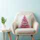 For Christmas, the cushion of the hot pink ribbon tree image creates a warm and bright atmosphere in the winter interior space.
