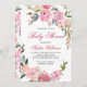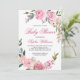 Customizable baby shower invitation featuring hand-drawn watercolor illustrations of pink roses, baby's breath, leaves and foliage. Perfect for It's a Girl baby showers and spring baby showers.