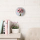 Pink Rose Bouquet Pearl Lace Romantic Round Clock