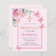 A blush pink background with an arch. Decorated with a pink floral, rose flower, green watercolored eucalyptus greenery and butterflies. Personalize and add a name and details.