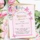 A blush pink background with a pink arch. Decorated with a pink floral, rose flower, green watercolored eucalyptus greenery and butterflies. Personalize and add the name of the bride to be and party details.