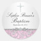 Baptism Sticker. Elegant pink rose & diamond cross. Exclusive Zazzle. Customize with your own details. PLEASE NOTE all flat images! They Do NOT have real lace, Diamonds or Jewels!!
