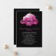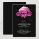 Sombre jet black death announcement with photo of a pink rose bloom, at the top, covered in dew. Personalize the text to suit your needs. Can be used as a funeral mourning card too. Matching black lined envelopes available.