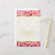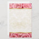 Subtle and elegant in gold edged damask, with a lovely profusion of pink roses at top and bottom of stationery..