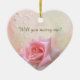 Pink Rose Engagement Heart Ceramic Ornament