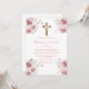 Pink rose floral first communion invitation in spanish for girl.