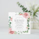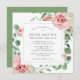 A very pretty square invitation for a 90th birthday party. The modern square shape features a botanical frame decorated with pink roses and white hydrangeas. Beautiful green eucalyptus leaves and rose branches create an open and airy vibe. All of the text is editable. Coordinating stationery and party supplies are available.