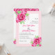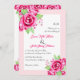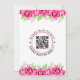 Pink watercolor rose flowers and QR code floral wedding invitation. It features bouquets of pink roses and green leaves on the corners while the couple's initials and other text are placed in a white frame with a light pink border. The back includes floral garlands on the upper and bottom parts and a QR code for guests to scan and RSVP online. This elegant romantic design is perfect for a Valentine's Day or a sprign wedding.