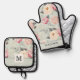 Pink Rose Garden Flower Pattern Oven Mitt & Pot Holder Set