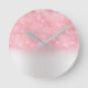 Pink Rose Glitter Metal Grey Silver Sparkly Abstra Round Clock