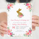 Pink Rose Gold Bunny Birthday Floral Invitation