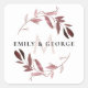 PINK ROSE GOLD FOLIAGE MONOGRAM WREATH WEDDING SQUARE STICKER