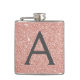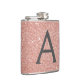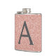 Pink Rose Gold Glitter and Sparkle Monogram Hip Flask