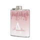 Blush Pink - Rose Gold modern ombre Faux dripping Glitter and Sparkle Elegant Luxury Monogram Flask. This Flask can be customized to include your initial and first name. The Pink Rose Gold Flask is perfect for a birthday or bachelorette party celebration.