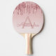 Pink Rose Gold Faux Dripping Glitter and Sparkle Elegant Monogram Ping Pong Paddle. This Ping Pong Paddle can be customized to include your initial and first name.