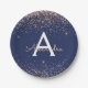 Pink Rose Gold Glitter Navy Blue Monogram Birthday Paper Plate