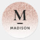 Pink Rose Gold Glitter Ombre Modern Monogram Name Classic Round Sticker