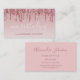 Blush Pink - Rose Gold Dripping Sparkly Glitter Microblading Lashes Salon Business Card with rose gold lettered typography for the monogram. The Blush Pink and Rose Gold Girly Glitter Business Cards are perfect for a modern and elegant Microblading eyelashes business. The profession can be changed to be used for any type of business. Please contact the designer for additional matching items.