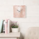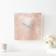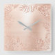 Pink Rose Gold Metallic Palm Botanical Metallic Square Wall Clock