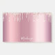 Decorated with rose gold faux glitter drip, paint drip look. Elegant pink faux metallic background. Template for Your name in white written with a hand lettered style script.