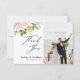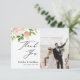 Pink Rose Greenery Elegant Script Photo Wedding Thank You Card