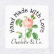 Pretty pink rose flower motif and custom text labels; ideal for all those crafty folk who make products for friends or for sale in a small business. Shown here with a floral image and text which reads Hand Made With Love all this and your name/business name are fully editable at no extra cost.