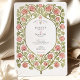 Celebrate your love story with this utterly romantic wedding invitation, inspired by the graceful elegance of the Art Nouveau period. This design features a beautiful, intricate frame of intertwining vines, rendered in a soft, earthy green. Nestled within the vines are stylized pink watercolor roses and charming, heart-shaped leaves in a muted sage green, creating a whimsical garden trellis effect. A single pink heart at the top adds a sweet, symbolic touch. The delicate watercolor artistry gives this invitation a soft, hand-painted feel. Inside this lovely floral border, your wedding details are presented in a classic and refined typography, which is fully customizable. It's the perfect choice for a fairytale, garden, or romantic vintage-themed wedding.