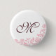 Pink Rose Lace Initial Script Monogram 1 Inch Round Button