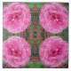 For lovers of the colour pink - The pattern on this large Ceramic Tile made from an original photograph by HomeWare of a beautiful pink garden rose. The flower is open wide, with all of its petals in ruffled layers. The pink colour becomes deeper in the centre of this lush bloom. The photo of the flower, with its surrounding green leaves and earth, has been repeated to form this original design. Thus the background of the roses looks a bit like an Oriental rug in soft shades of greens and earth tones.