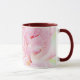 This pretty mug features my original photograph of a pink rose, close up of the petals, styled in an illustrated and painterly, textured technique for an artsy appearance. The handle and inside of the cup are a maroon tone to complement the artwork.