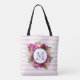Pink Rose & Poppy Floral Bouquet Monogram Tote Bag