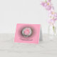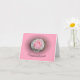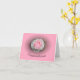 A greeting card with a pink rose showing through a pink blurred vignette. The text reads "Congratulations". The text is customizable and can be changed by the buyer. This card would be suitable for several happy occasions, including the arrival of a new baby girl.