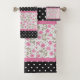 Pink Roses And Black And White Polka Dots Bath Towel Set