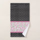 This sophisticated bath towel set has pretty pink roses trailing across a white with black polka dots background and black and white polka dot edging. There's more coordinating items in the store too so you can have a complete look in your bathroom!