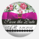 PINK ROSES AND FUCHSIA RIBBON MONOGRAM Gemstone Classic Round Sticker