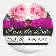 PINK ROSES AND FUCHSIA RIBBON MONOGRAM Gemstone Classic Round Sticker
