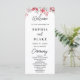 Introducing our elegant and charming wedding program featuring a stunning design of hanging grey roses and colourful greenery. This program is perfect for couples looking for a simple yet rustic, bohemian, or floral aesthetic. The predominantly white background serves as the perfect canvas for the grey roses and pink, green, grey, and red greenery, which are elegantly arranged in the centre of the program in a rustic style.