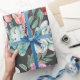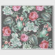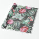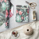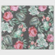 Pink Roses and Succulent Cactus Pattern on Black Wrapping Paper