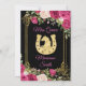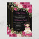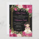 Mexican Pink Roses Flowers & Black Background Quinceanera Invitation,