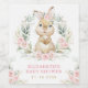 This elegant design features a cute baby bunny adorned with gorgeous pink flowers and watercolor greenery wreath