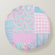 A pretty Round Pillow or Cushion, with a faux patchwork pattern of Lipstick Pink Roses and tiny White Butterflies on a Turquoise Blue background, teamed with matching Polka Dots, Check Ginghams and Stripes. Part of the Posh & Painterly 'Summer Days' collection, this pattern can easily be adjusted to fit any Pillow or Cushion.