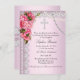 Pink Roses Cross Holy Communion or Baptism Invitation