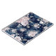 Let the pink rose flowers bloom on a dark blue abstract background.