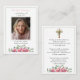 An elegant memorial photo funeral memorial prayer cards featuring green eucalyptus leaves an pink roses. You can customisze with your chosen prayer, psalm or poem. Elegant botanical border on both sides and a wooden cross with leaves on the back. The serene, natural aesthetic of eucalyptus leaves provides a calm and beautiful theme for funeral services and it symbolizes healing, protection, strength, peace, and longevity.