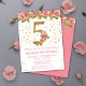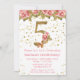 Pink Roses Floral 5th birthday party invitation for a 5 year old girl with modern script writing and gold glitter.