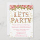 Pink Roses Floral birthday party invitation for any age birthday celebration with modern script writing, pink roses and gold glitter.