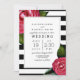 Pink Roses Floral Black + White Stripe Wedding Invitation