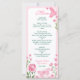 This blush pink quinceañera 15th birthday party menu design features hand drawn roses, florals and butterflies. On the back of the design is an illustration of a girl in a ball gown with butterflies flying above her and florals around her. You can customise the entire menu and all the additional text front and back. See the whole matching collection.
