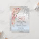 Pink Roses Glitter Drips Silver 80th Birthday Invitation